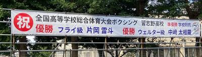 この健闘をたたえて横断幕を校門前に設置いたしました。