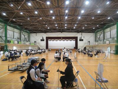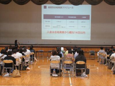 具体的な試験についての説明もあり、3年生は進路に対する意識が更に高まったようでした。いよいよ進路活動が本格的に始まります。進路実現に向けて粘り強く取り組んでほしいと思います。