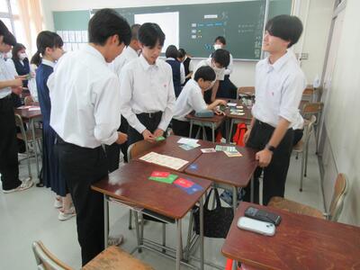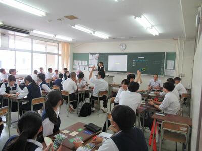 SDGsをテーマに講師の先生をお招きして、各ホームルームでカードゲーム「2030SDGs」を行いました。生徒は3人一組のグループを作り、各チームに与えられたゴールを実現すべく様々なアクションを起こしながら、同時にSDGsが掲げる目標達成を目指しました。ゲームを通して、SDGsの本質を体感的に理解することができました。