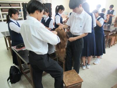7月16日(火)、1学年を対象に職業体験を実施しました。大学、短大、専門学校の先生方を講師としてお招きし、生徒は希望する講座に分かれ各職業の体験をしました。血圧測定や編み込み、自動車整備など本格的な体験が多く、生徒たちは意欲的に取り組んでいました。