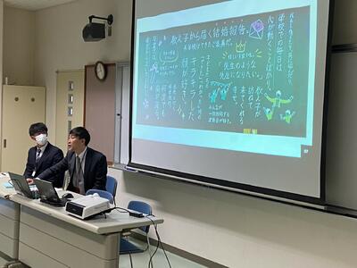 梅原管理主事の講義は、教員の魅力や仕事の内容など